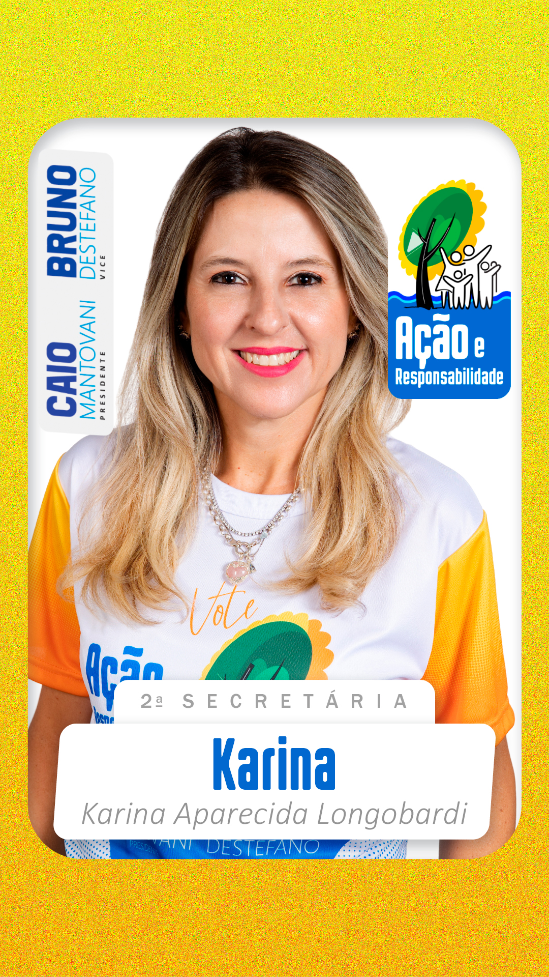 Karina Aparecida Longobardi é advogada e funcionária pública, natural de Descalvado, nascida em 21 de outubro de 1981. Filha de Maria Aparecida Tallaci e Gilmar Longobardi, tornou-se sócia do Clube de Campo das Figueiras em 16 de março de 1994, construindo desde então uma trajetória marcada pela dedicação, responsabilidade e compromisso com a comunidade.